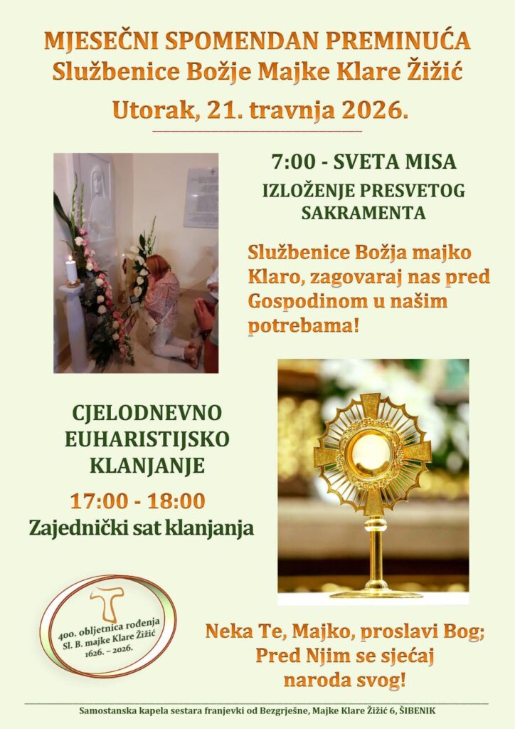 Tradicionalno uskrsno čestitanje predstavnicâ redovničkih zajednica u Splitu splitsko-makarskom nadbiskupu Zdenku Križiću upriličeno je na Uskrsni utorak 7. travnja u Nadbiskupskom ordinarijatu u Splitu, izvijestio je Tiskovni ured Splitsko-makarske nadbiskupije. Uime svih redovnica čestitku nadbiskupu Križiću pročitala je provincijalna poglavarica Sestara milosrdnica Provincije Navještenja Gospodinova – Split s. M. Martina Prcela. U govoru je podsjetila …