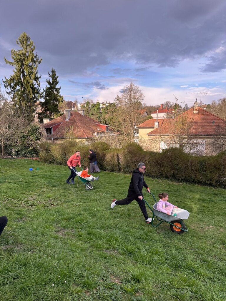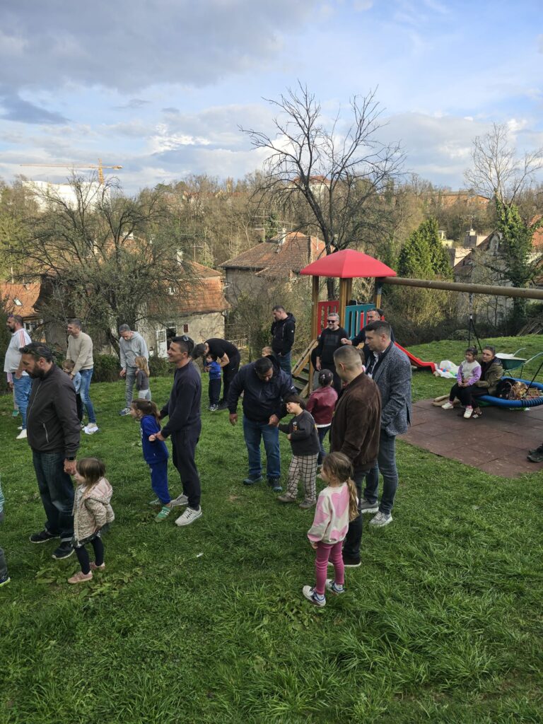 A kako najbolje iskoristiti sunčan dan nego uz igru i druženje! U punom broju, naši dragi tate sudjelovali su u štafetnim igrama sa svojom djecom. Vožnja u tačkama, skakanje u vrećama, nošenje loptice u žlici samo su neke od igara koje su izazvale veliko veselje među najmanjim i najvećim igračima ali i nama publici. Svi su bili pobjednici. Završetak natjecanja nije značio i završetak druženja. U sjenici smo pripremili hranu i piće kako bi naši natjecatelji povratili snagu i energiju koje su nam potrebne za priredbu sljedeći tjedan.