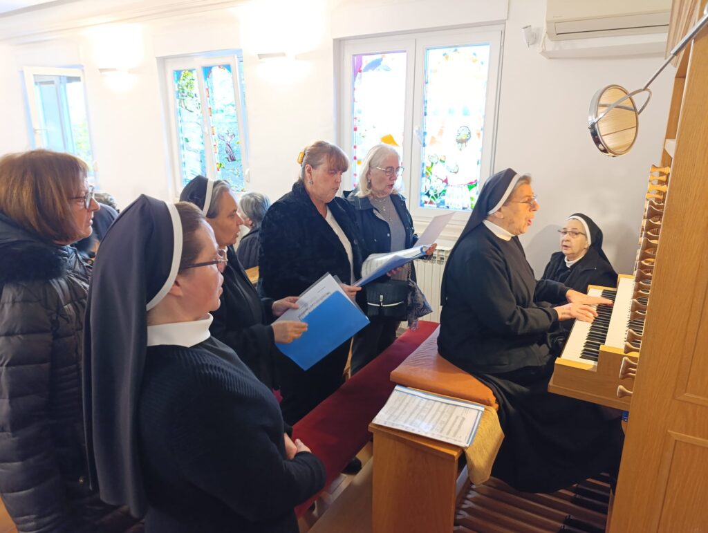 Lijepi broj vjernika i našoj kapeli koji se okupio obilježio je zajedno s nama sestrama naš dan.  I zbor je svojim pjevanjem uveličao proslavu,  u pratnji s. Zdravke Gverić, voditeljice zbora. Radosno druženje nastavili smo kod obiteljskog stola.
